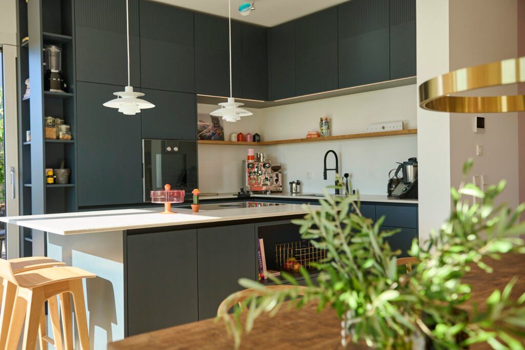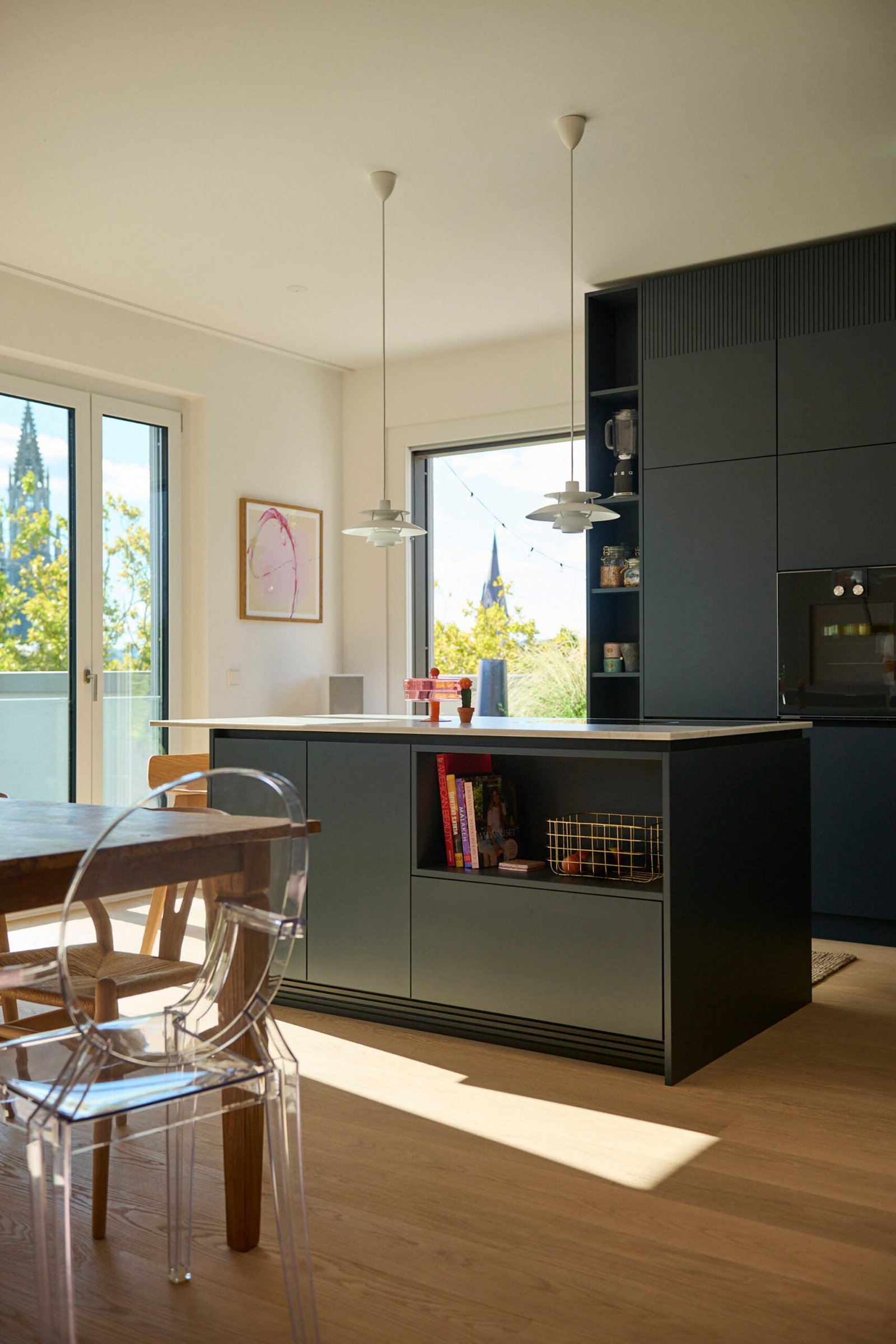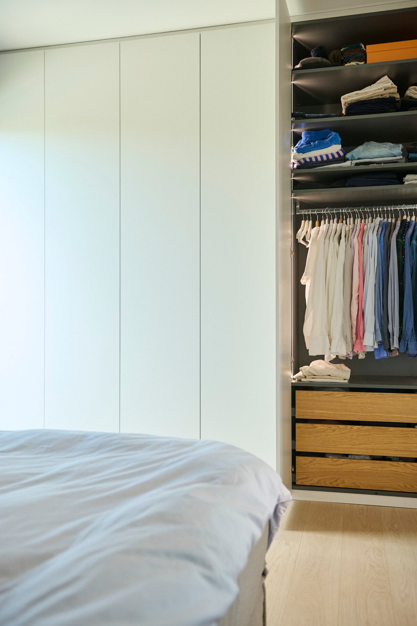 Ob elegantes Wohnmöbel mit verstecktem Home-Office, grifflose Küchenfronten in seidenmatter Oberfläche oder passgenaue Schranklösungen – jedes Element vereint Ästhetik mit Alltagstauglichkeit. Farben, Materialien und Proportionen sind präzise aufeinander abgestimmt und unterstreichen den klaren, stilsicheren Charakter des Interiors.