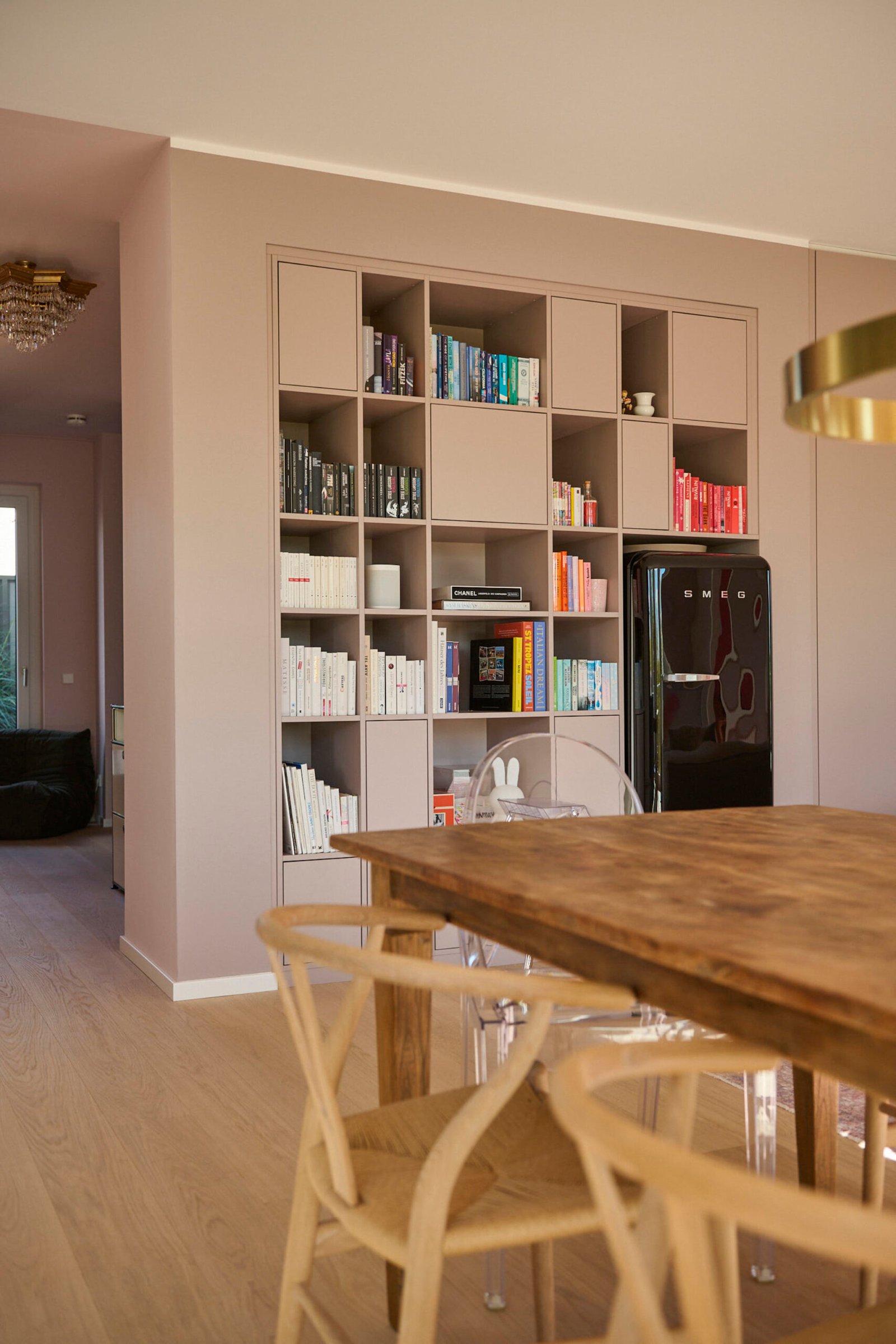 Im Mittelpunkt: maßgefertigte Einbauten, die Architektur und Designklassiker zu einer Einheit werden lassen.